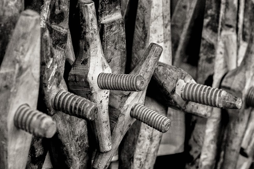 The boatbuilding traditionally starts by carefully selecting the right trees and roots to make the different parts of the boat. The wooden boat clamps that their great-grandfathers made are still being used by the brothers, their polished surfaces shiny and bright due to frequent handling over decades. They hang on the wall in the boathouse as witnesses of the passing of time. The master boatbuilders use templates and there are books and descriptions on how to build the boats, but even so it is challenging to shape the hull into a real Nordland boat with its characteristic lines and seaworthiness. Every boat is unique.